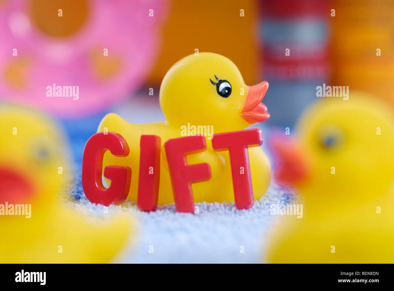 Rubber Duck And Writing Gift German For Poison Poisons In Rubber And Plastic Products Stock Photo Alamy